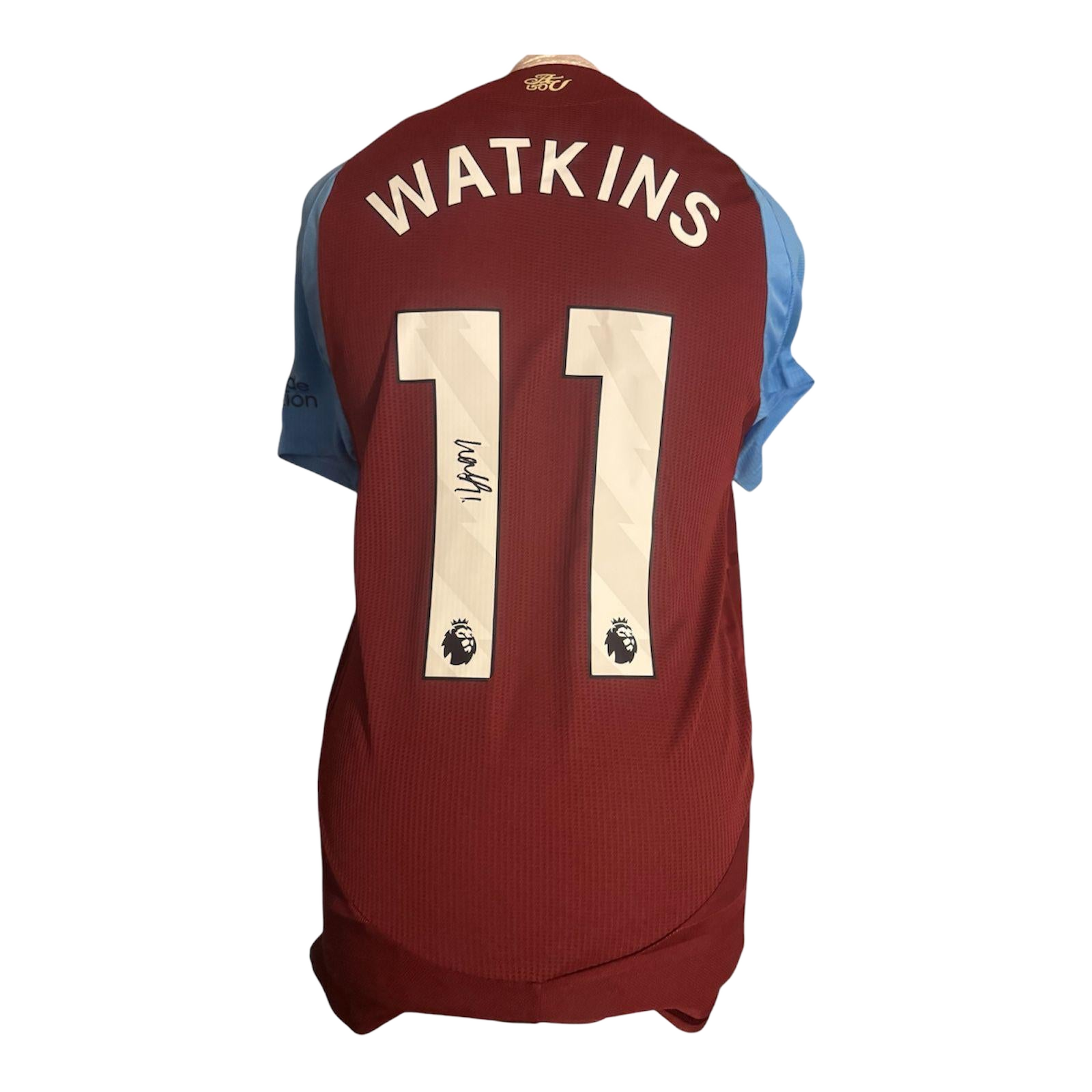 Own a piece of Aston Villa history with this expertly authenticated Ollie Watkins signed shirt. Featuring the signature of one of the club’s most prolific forwards, this shirt is crafted from premium materials for lasting quality and vibrant display. Ideal for serious collectors and dedicated fans, it offers a unique connection to Villa’s dynamic attacking talent and a standout addition to any memorabilia collection.