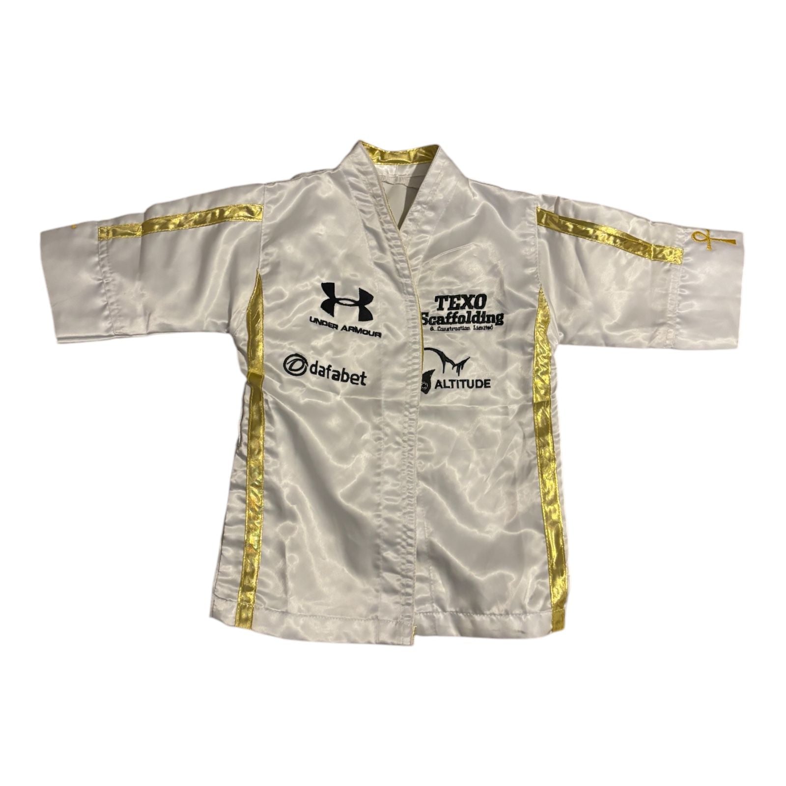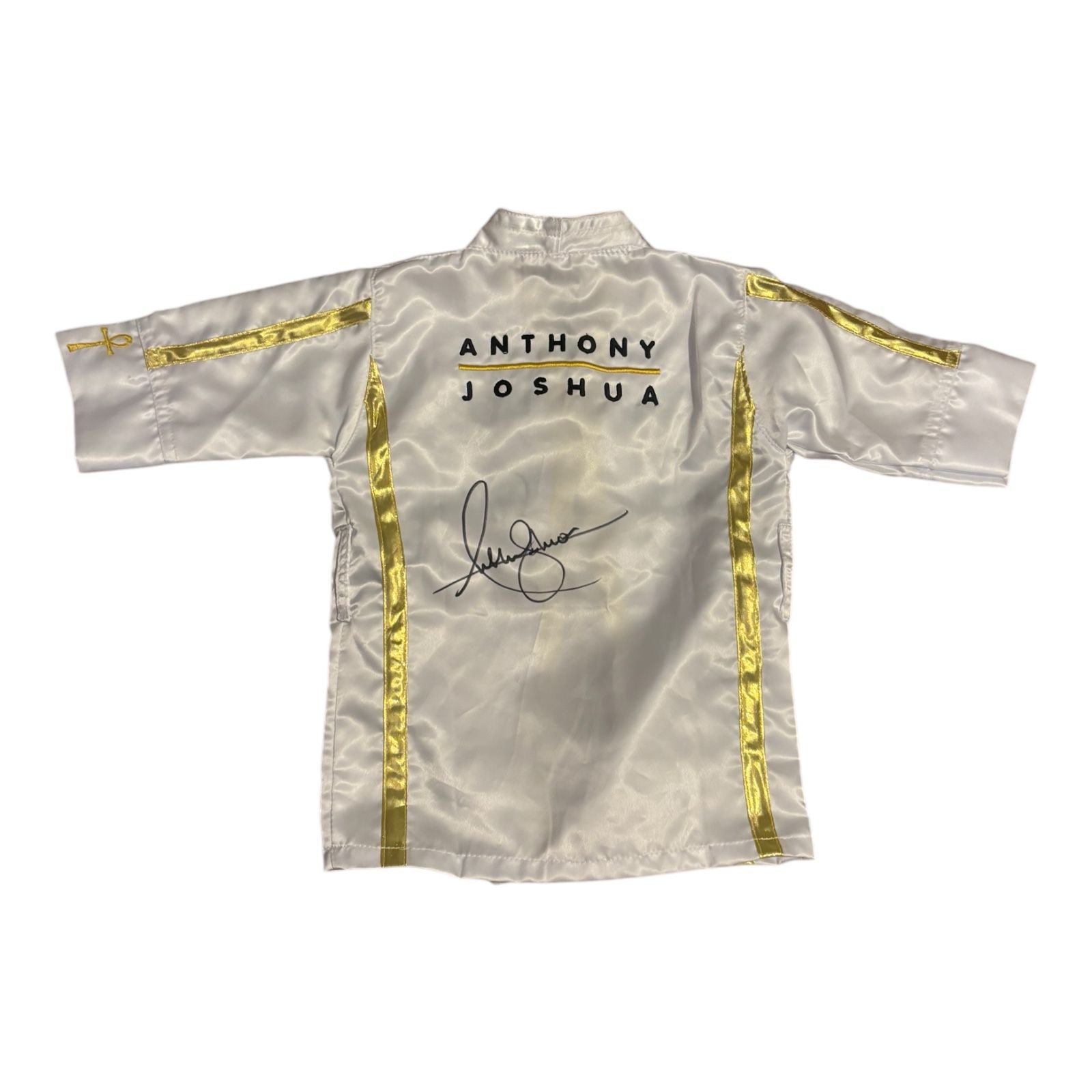 Anthony Joshua's iconic signed robe represents a pivotal moment in heavyweight boxing history. This authentic piece bears the signature of the two-time unified champion, capturing his dominance in the ring during his prime years. Perfect for serious collectors and boxing enthusiasts, this robe serves as a tangible connection to one of modern boxing's most compelling figures. Whether displayed in a dedicated memorabilia space or as a centerpiece of your collection, this signed garment authenticates your passion for the sport and its legendary athletes.