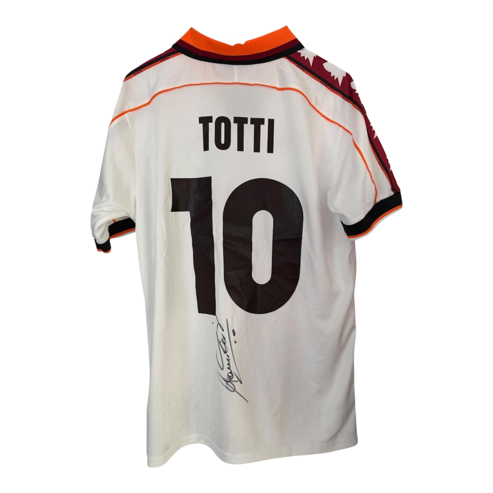 Celebrate football history with the Totti Signed Retro Shirt, featuring an authentic signature from the legendary Francesco Totti. This classic design pays homage to a golden era of the sport, blending nostalgia with collector’s value. Crafted with quality materials, it offers both comfort and durability, making it an ideal display piece or wearable tribute for discerning fans and memorabilia collectors. Elevate your football collection with this unique and timeless shirt.