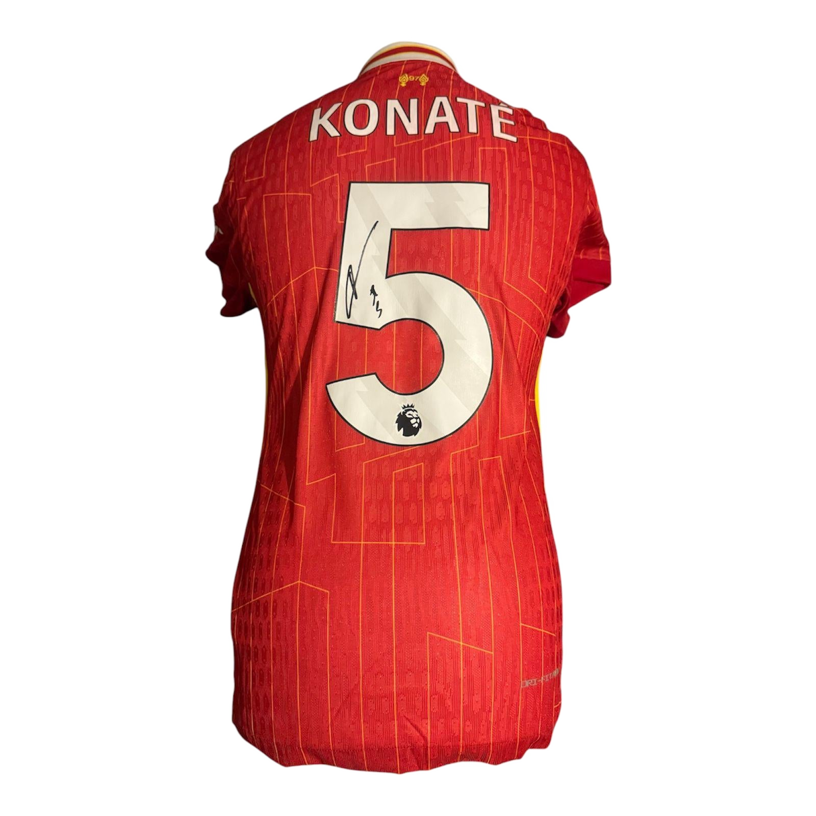 This Konate Signed Liverpool 24/25 Home Shirt features the iconic design worn by Liverpool in the 2024/25 season and is personally signed by Ibrahima Konate. A prized collectible for fans and enthusiasts, it offers a distinctive way to celebrate one of the club’s standout defenders. Ideal for display or casual wear, it combines striking visuals with valuable autograph authenticity.