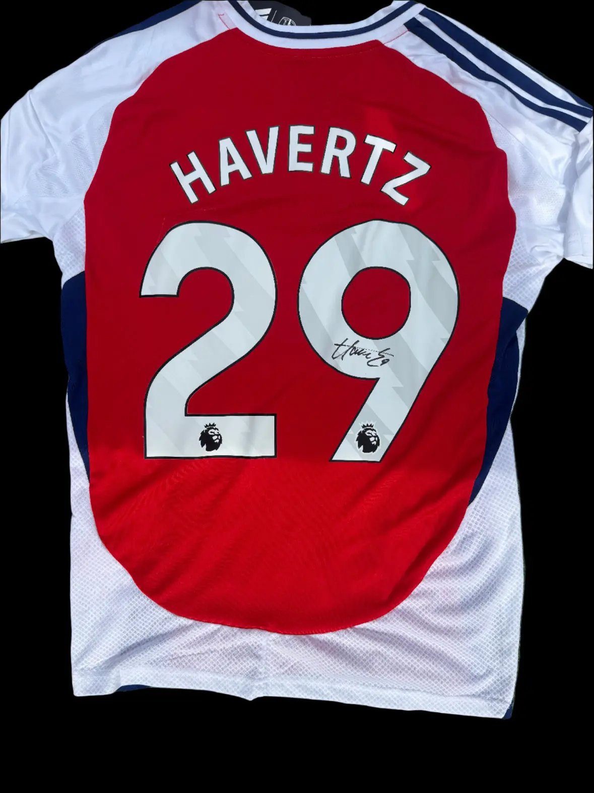 Secure this iconic kit with this authentic 24/25 Arsenal Home Shirt, personally hand-signed by German international star Kai Havertz. This is a brilliant piece of current memorabilia that celebrates the dynamic forward's role in the Arsenal squad. The signature is bold and placed perfectly, making this jersey an ideal item for framing and display.